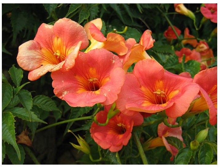 Aναρριχώμενο φυλλοβόλο φυτό, με σύνθετα, πράσινα φύλλα και πορτοκαλί χωνοειδή άνθη το καλοκαίρι. Τα άνθη του έλκουν έντονα μέλλισες. Αναπτύσσεται ακόμη και σε φτωχά, μέτρια υγρά εδάφη, σε ηλιόλουστες θέσεις. Κλαδεύεται στις αρχές του χειμώνα. Φυτεύεται σε φράχτες και πέργκολες. Κατάλληλο και για παραθαλάσσιες φυτεύσεις. Πολλαπλασιάζεται με μοσχεύματα ρίζας.